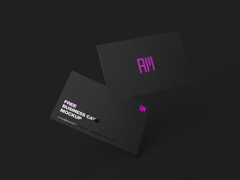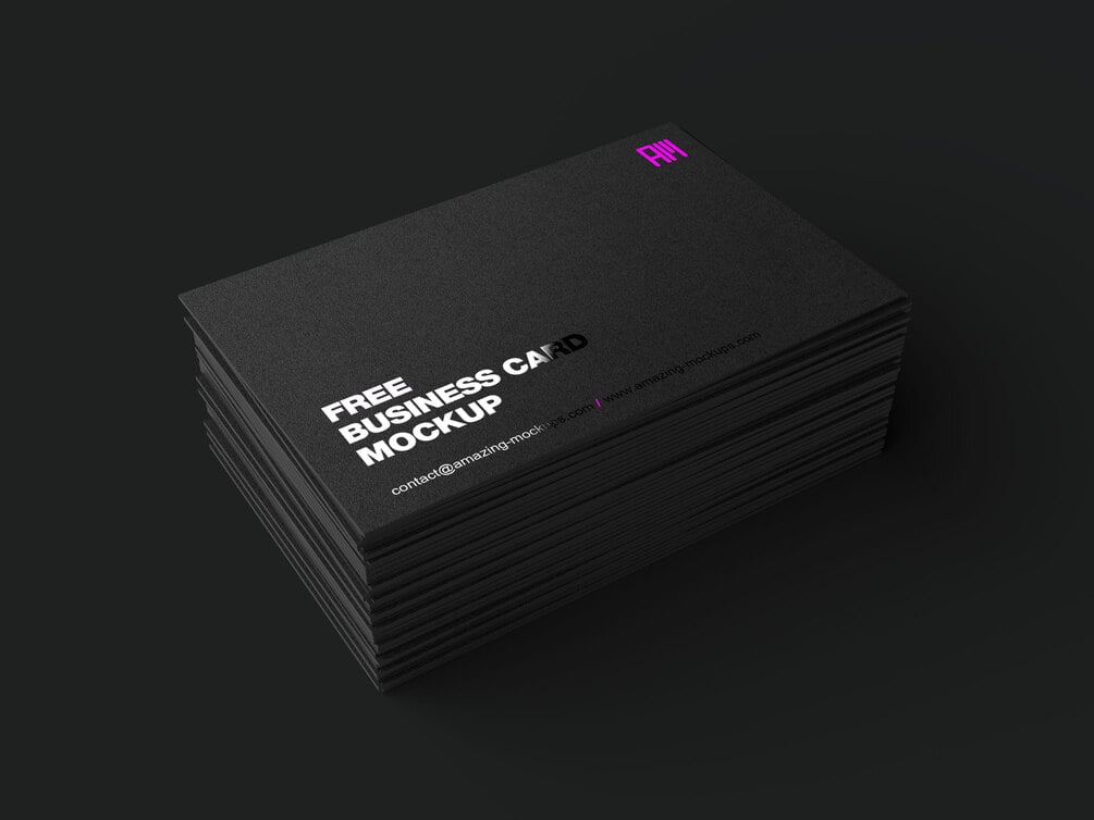 Five different views of a minimal yet detailed business card mockup. The organized Photoshop document is very easy to use. Just place your design in the smart object and you are ready to go. Since the cards are separate from the background, you can easily change the background color to match your design. This set also exists in "light mode". Just check out my other projects.