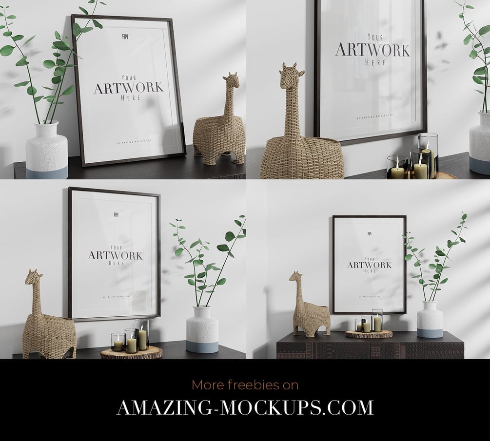 Dark Wooden Picture Frame Mockup – High-Res 4000×4000 PSD, Smart Objects, 4 Angles